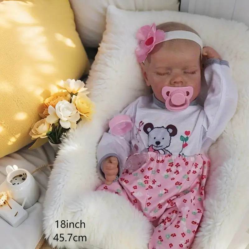 18 Inch Cute Rebirth Doll, Closed Eyes Doll Simulation Baby Toys, Beautiful Clothes Pattern Kids Playmate Companion Doll, Realistic Textures, Birthday And Easter Gifts (ONLY DOLL\u002FNO ACCESSORES)