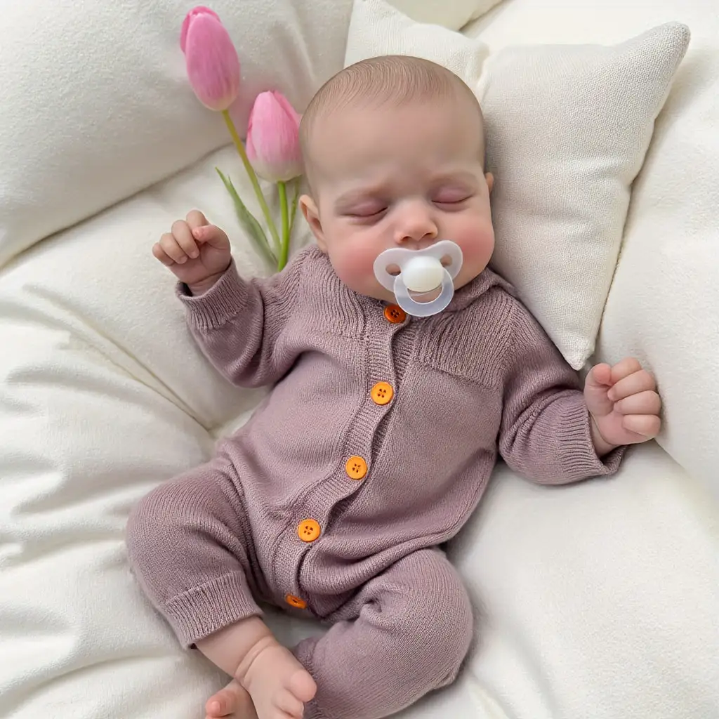 19-inch Lifelike Vinyl Baby Doll, Soft Fabric Body, Sleeping Eyes, Detailed Hair, Realistic Baby Features, Comes with Pacifier And Bottle, Great for Birthday Or Christmas Gift, Cute And Collectible.